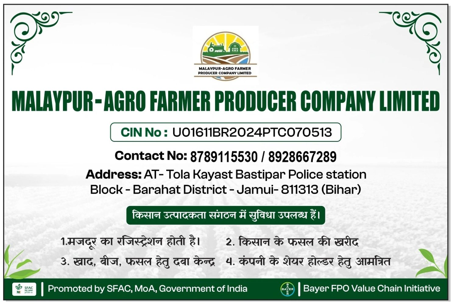 At Malaypur FPO, we are dedicated to empowering local farmers through sustainable agricultural practises. Our mission is to enhance productivity while ensuring environmental conservation and community welfare.